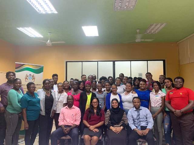 Workshop facilitator Will Campbell (seated extreme left) and Member of Parliament, Jermaine Figueira (seated extreme right) along with the participants of the 2-day nation-building workshop