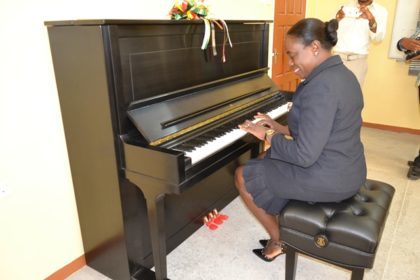 Minister within the Ministry of Education Nicolette Henry playing one of the pianos
