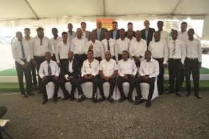 The first graduating batch of the TOTALTEC International Marine and Petroleum training Academy with Minister of Natural Resources Raphael Trotman and executives of TOTALTEC.