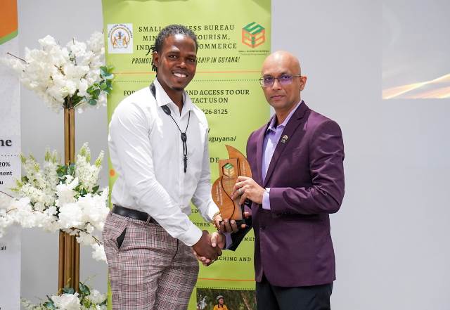 WhatsApp Image 2024-11-23 at 5.10.22 PM (1)November 23, 2024 Vaon-Marc Hestick owner of Boss Chips Enterprises receiving the award title Small Business Performing Arts