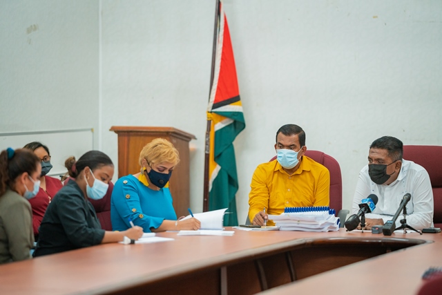 During the ceremony at the ministry’s boardroom, Castilho Engenharia Incorporated inked a $261.7 million contract to rehabilitate 18 kilometers of the Ituni/Tacoma main access road. The completion of this project will improve access to thousands of acres of farmlands.