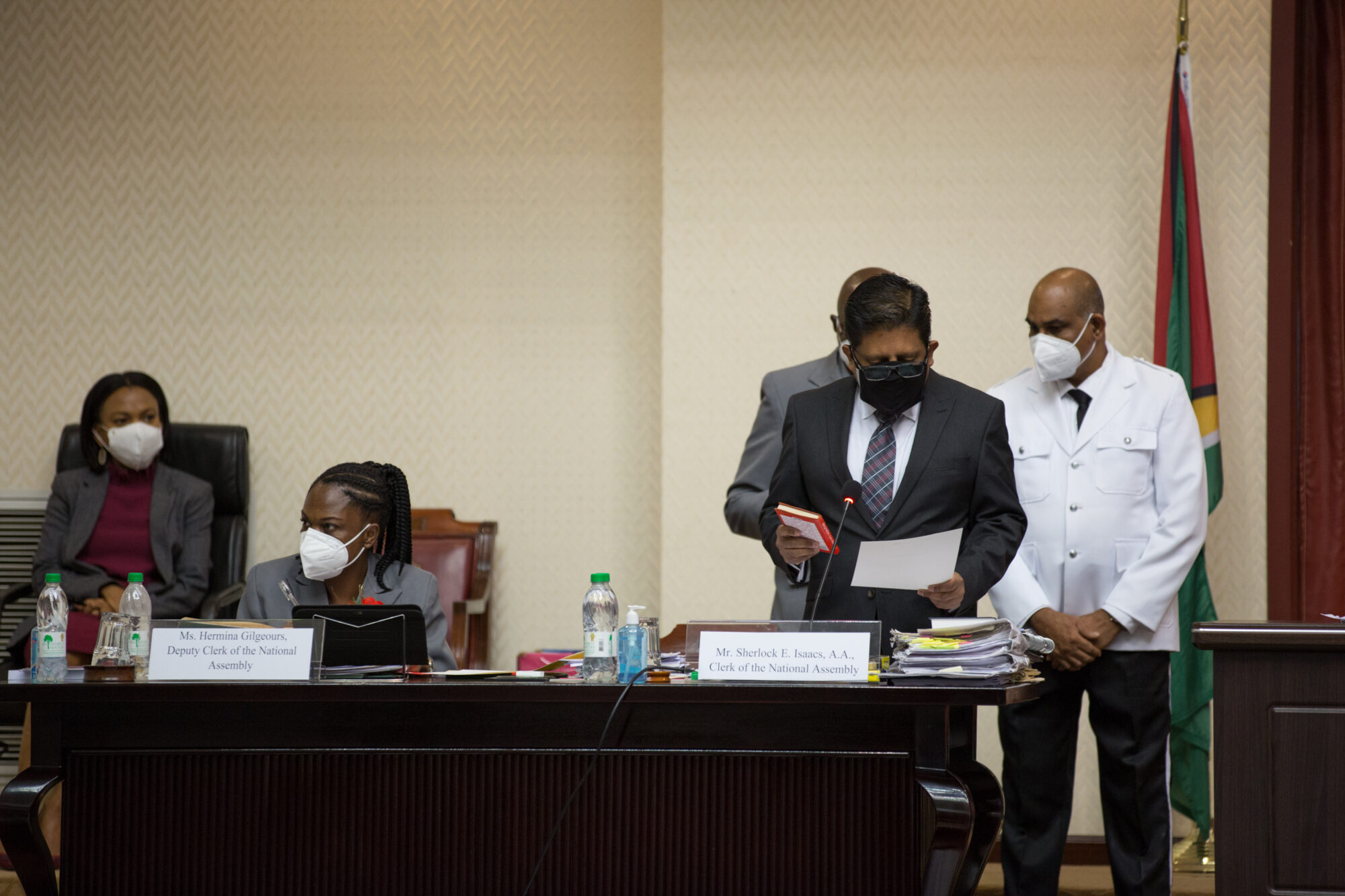 Senior Minister with responsibility for Finance within the Office of the President, Dr. Ashni Kumar Singh taking the Oath of Office