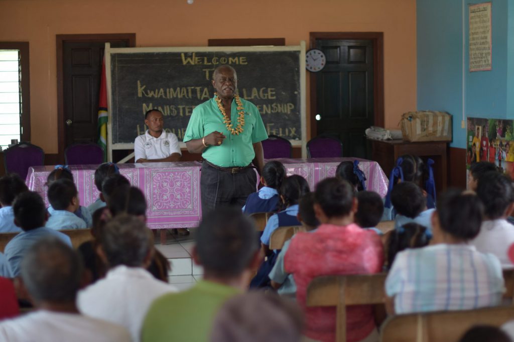 Minister of Citizenship, Hon. Winston Felix speaking to the residents of Kwaimatta, North Rupununi in Region 9.