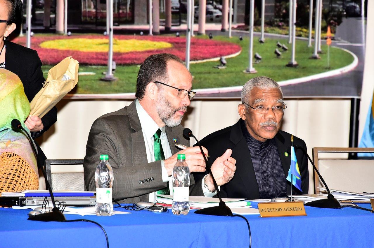 _DSC7359February 16, 2017 President Granger listens attentively as Secretary General of the Caribbean Community (CARICOM), Ambassador Irwin LaRocque makes a point.