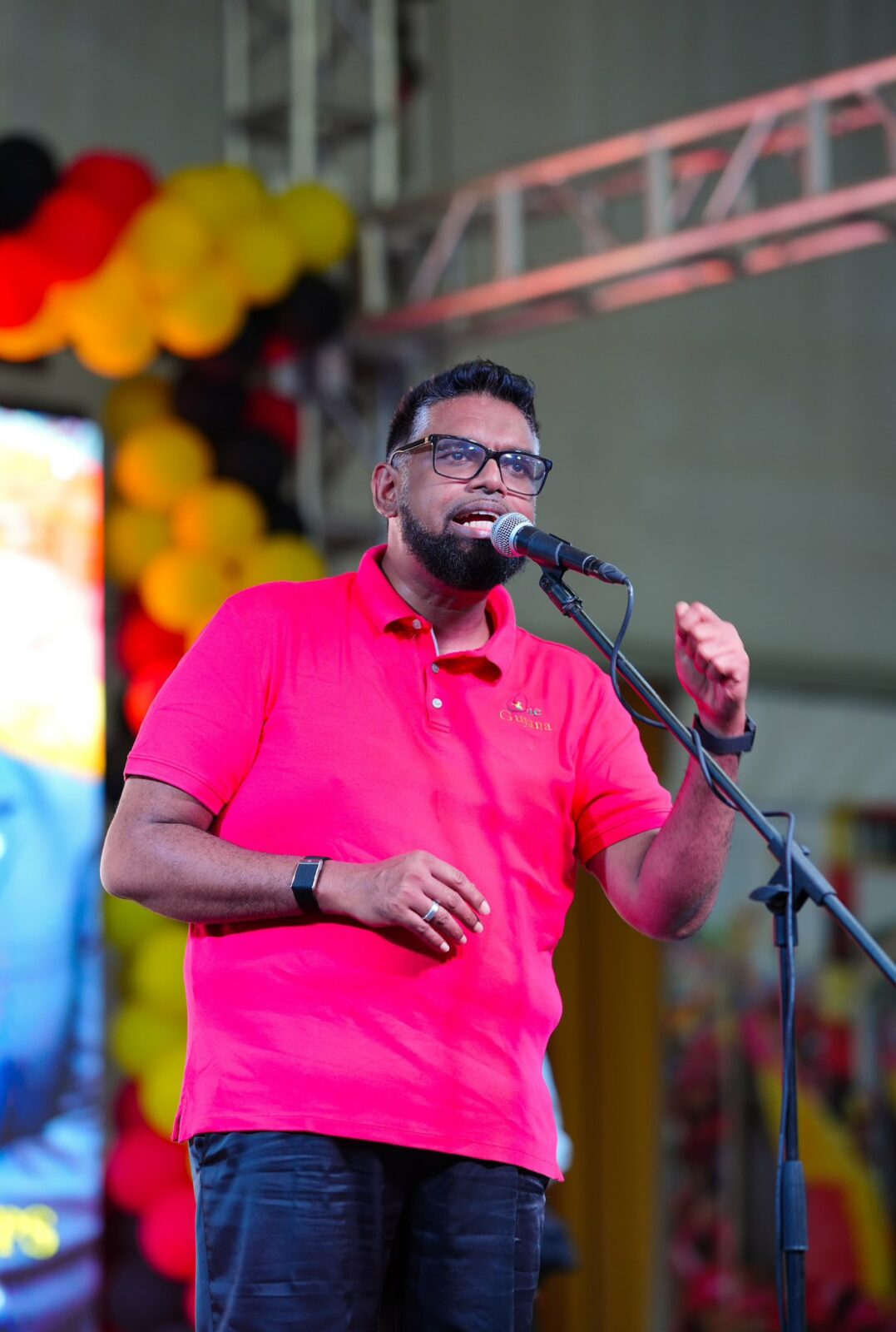 Ali 4June 28, 2025 President Dr Mohamed Irfaan Ali delivering remarks to thousands at the PPP fundraier dinner on Friday evening