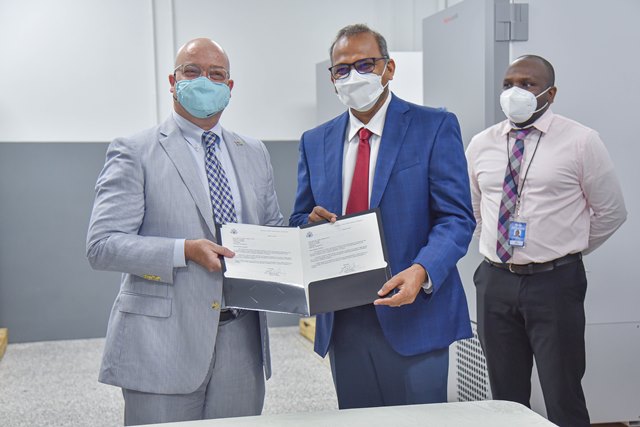 Minister of Health, Hon. Dr. Frank Anthony received the equipment on Monday at the Ministry’s Central Supplies Unit in Kingston.