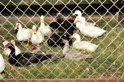 President David Granger stands near the livestock pens at the Essequibo Agro and Trade Expo with Regional Chairman, Mr. Devanand Ramdatt and President of the Essequibo Chamber of Commerce, Mr. Deleep Singh