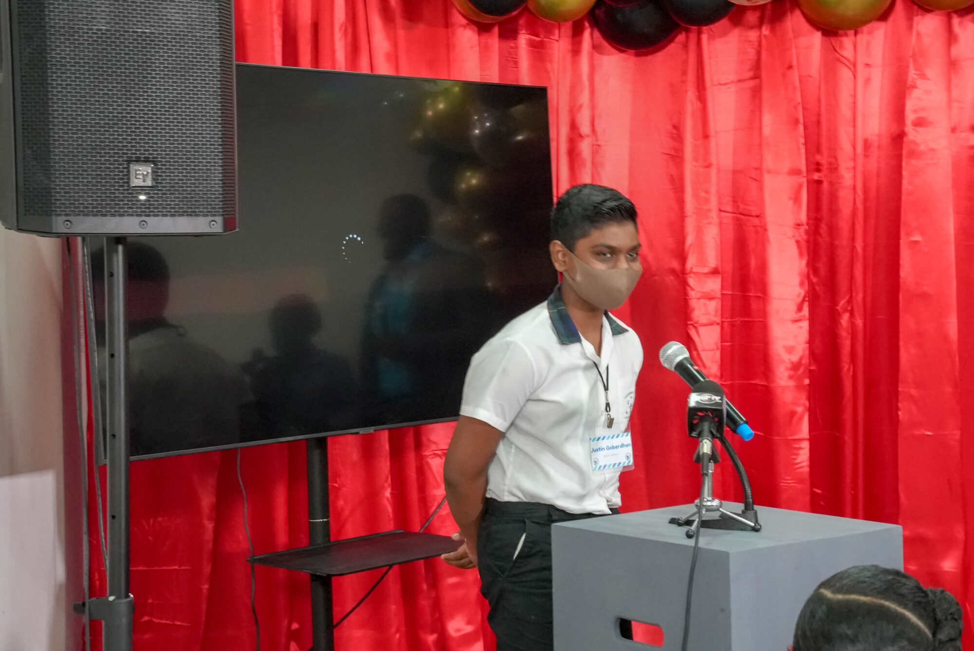 DSC06497June 25, 2021 One of the Whiz Kids finalists, Justin Goberdhan of Mae’s Schools sharing about his experience Photo by: Ministry of Education
