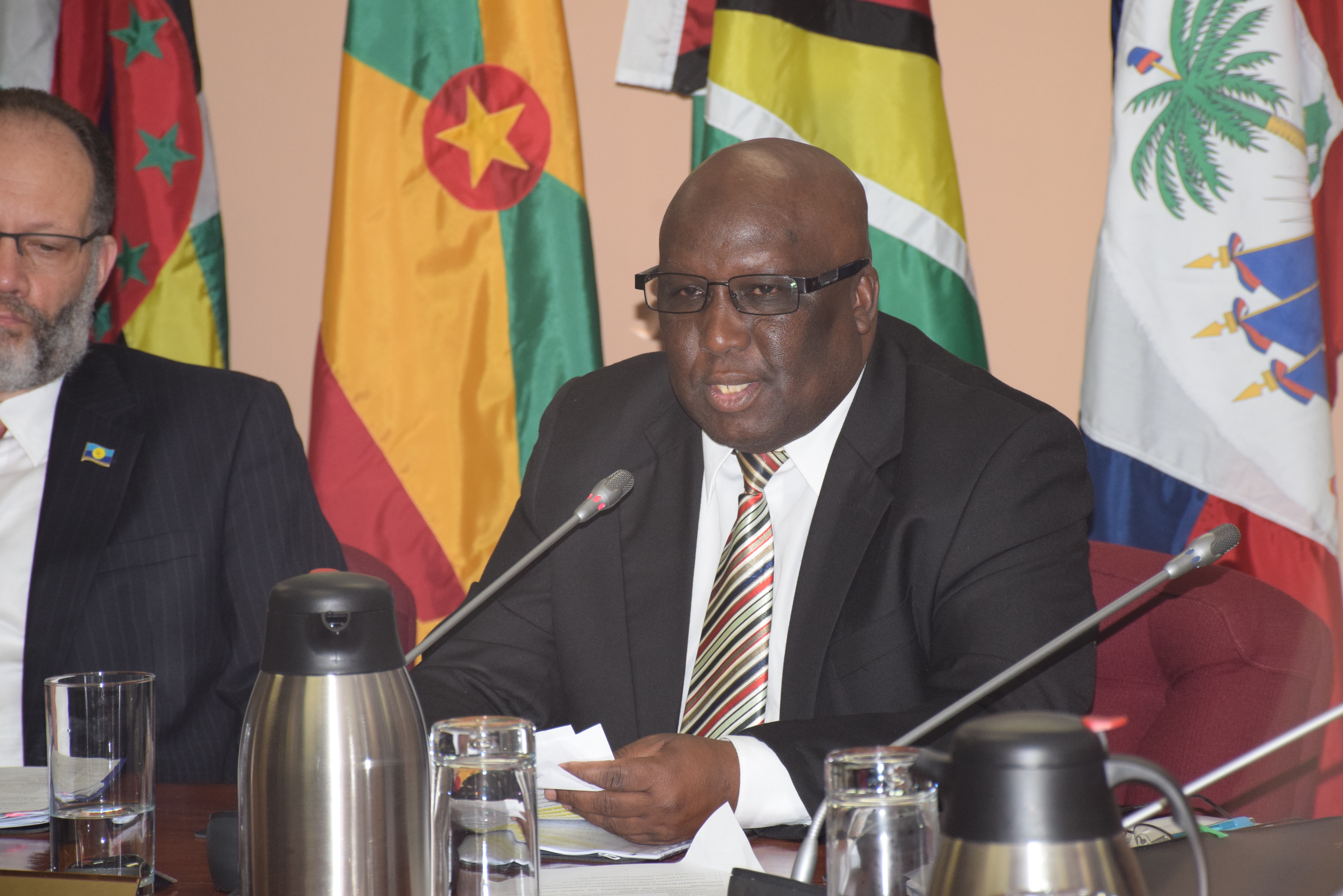 DSC_0735March 31, 2017 Chairman of COHSOD and Minister of Education of St. Vincent and the Grenadines, St. Clair Prince addressing the 37th Meeting of the Council for Human and Social Development (COHSOD) in Guyana.