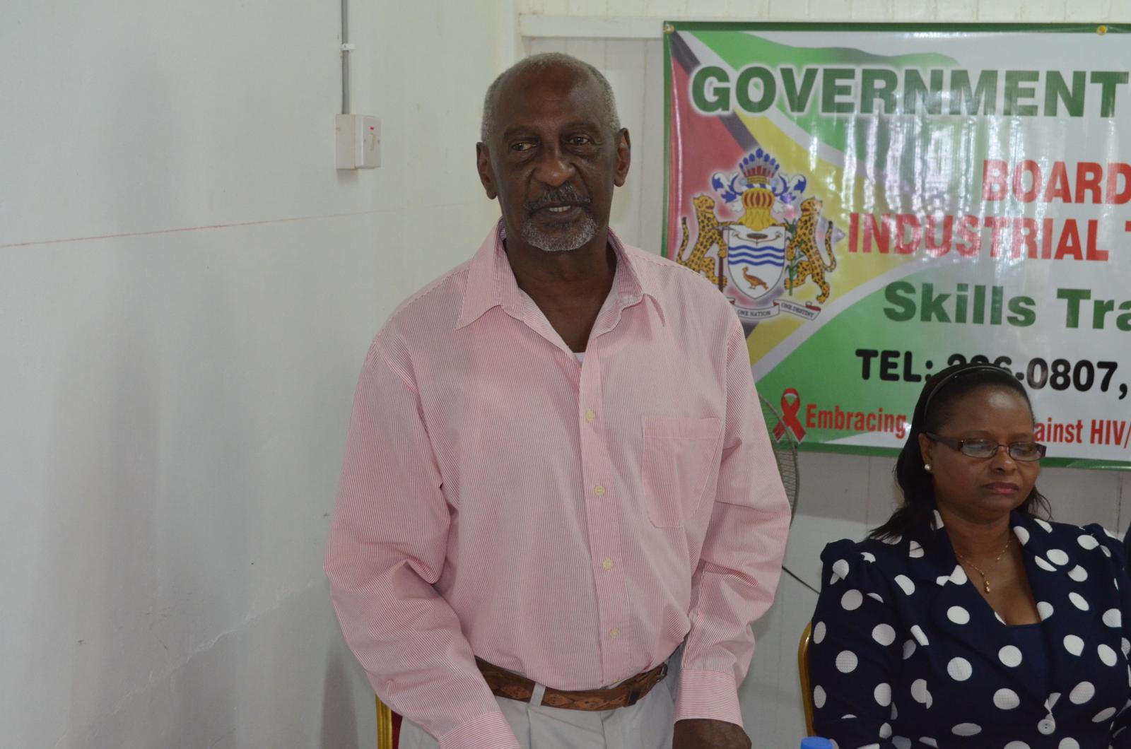 dsc_0900September 10, 2016 Minister within the Ministry of Social Protection, Keith Scott addressing the launch of the Board of Industrial Training’s (BIT’s,) heavy duty equipment operator programme in Mahdia, Region 8