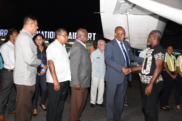Minister of State Joseph Harmon greeting an evacuee from Sint Maarten.