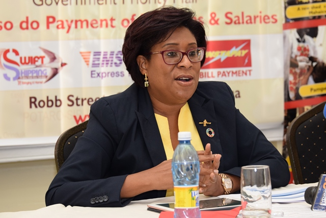 DSC_1612February 12, 2018 Minister of Public Telecommunications, Catherine Hughes speaking at the annual Post Office Corporation conference.