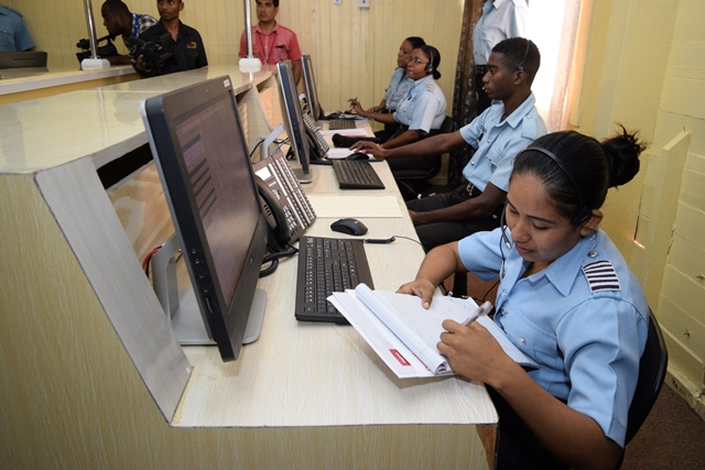 DSC_5182November 3, 2017 Officers manning the 911 emergency call system at the Brickdam Police station.
