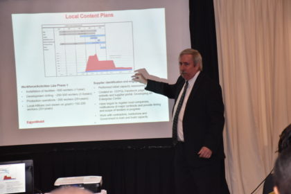 ExxonMobil Country Manager, Jeff Simon, in his presentation explained the process that the company and its partners will undertake towards a projected 2020 production start.