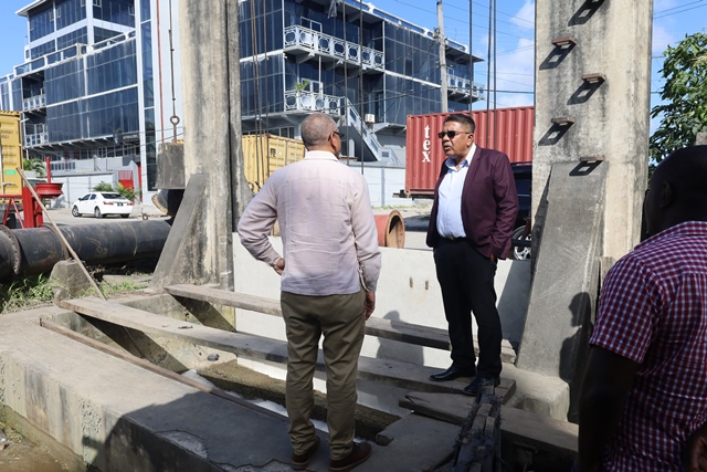 Minister of Agriculture, Honourable Zulfikar Mustapha, after receiving reports of issues at the structure resulting in several buildings around the Princes Street area being affected, conducted a site visit to determine the cause.