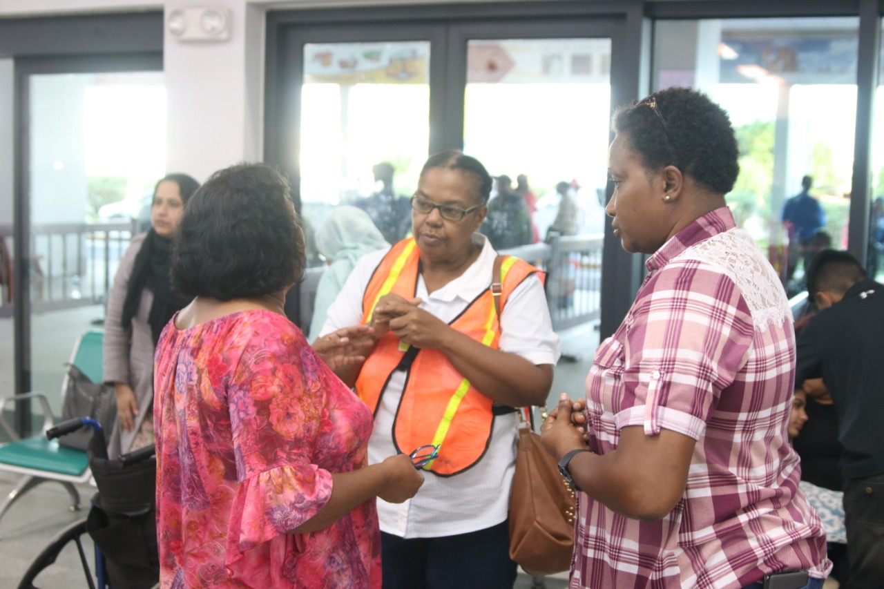 WhatsApp Image 2018-11-09 at 6.45.05 AM(1)November 9, 2018 Minister within the Ministry of Public Infrastructure, Annette Ferguson meeting with passengers who were on board the Fly Jamaica flight which was bound to Toronto, Canada