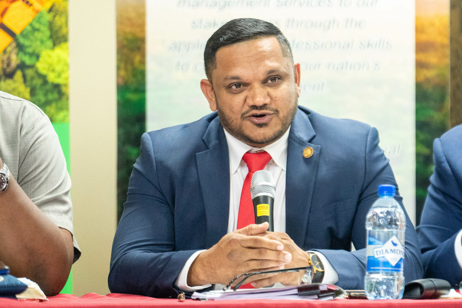 DSC_5608August 14, 2024 Minister of Natural Resources, Vickram Bharrat speaking during a press conference on Wednesday