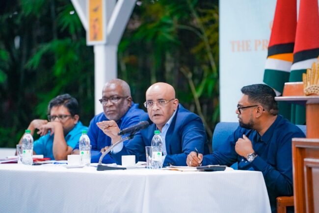 During the State House discussion, the vice president, along with President, Dr Mohamed Irfaan Ali, Prime Minister Brigadier (Ret’d) Mark Phillips, Senior Minister in the Office of the President, Dr Ashni Singh and other officials addressed members of the private sector and fielded a number of questions.