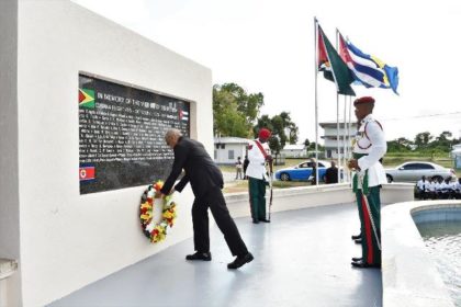 Guyanese, today, President Granger said, remember the victims of the Cubana terrorist attack and assemble before a monument, which memorialises the human cost of terrorism and to consider the political cost to small states, which seek to exercise their sovereignty and independence.
