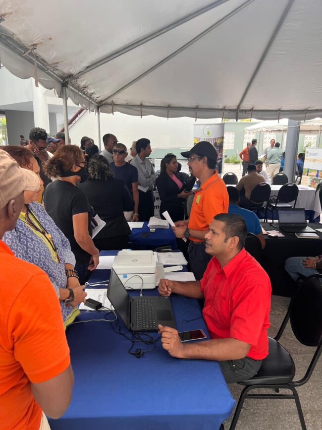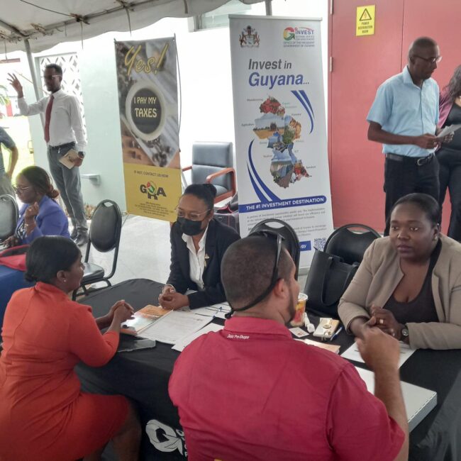 Of the agencies present, Go Invest, Maritime Administrative Department, National Insurance Scheme, Environmental Protection Agency, Guyana Revenue Authority, Guyana Fire Service, Central Housing & Planning Authority, Guyana Lands & Survey Commission, Mayor and Town Council, Assuria, Diamond Fire & General Insurance, Nalico/Nafico, Demerara Mutual and BrinsJen Systems Development Specialists