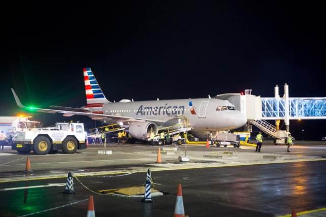 CJIAMarch 26, 2020 (Flashback: Dec 2019) An American Airline aircraft lands at the Cheddi Jagan International Airport Image: DPI