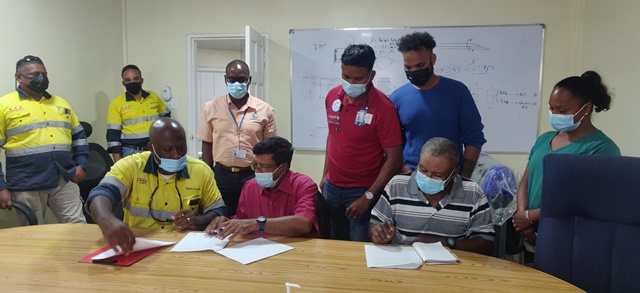 During a simply signing ceremony at GINMIN in Sand Hill, GWI’s Chief Executive Officer Mr. Shaik Baksh pointed out that this collaboration forms part of the utility’s key mandate to provide potable water access to riverain communities. In doing so, the CEO noted that partnerships with stakeholders such as GINMIN, as well as communities, are important.
