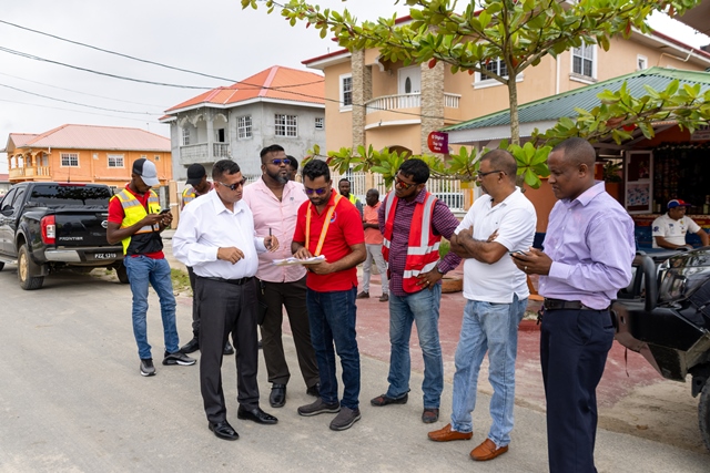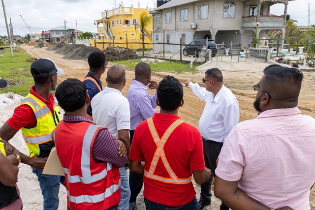 On Friday afternoon, the Minister of Housing and Water, Hon. Collin Croal and engineers from the Central Housing and Planning Authority (CHPA) inspected infrastructure works at Herstelling, East Bank Demerara.