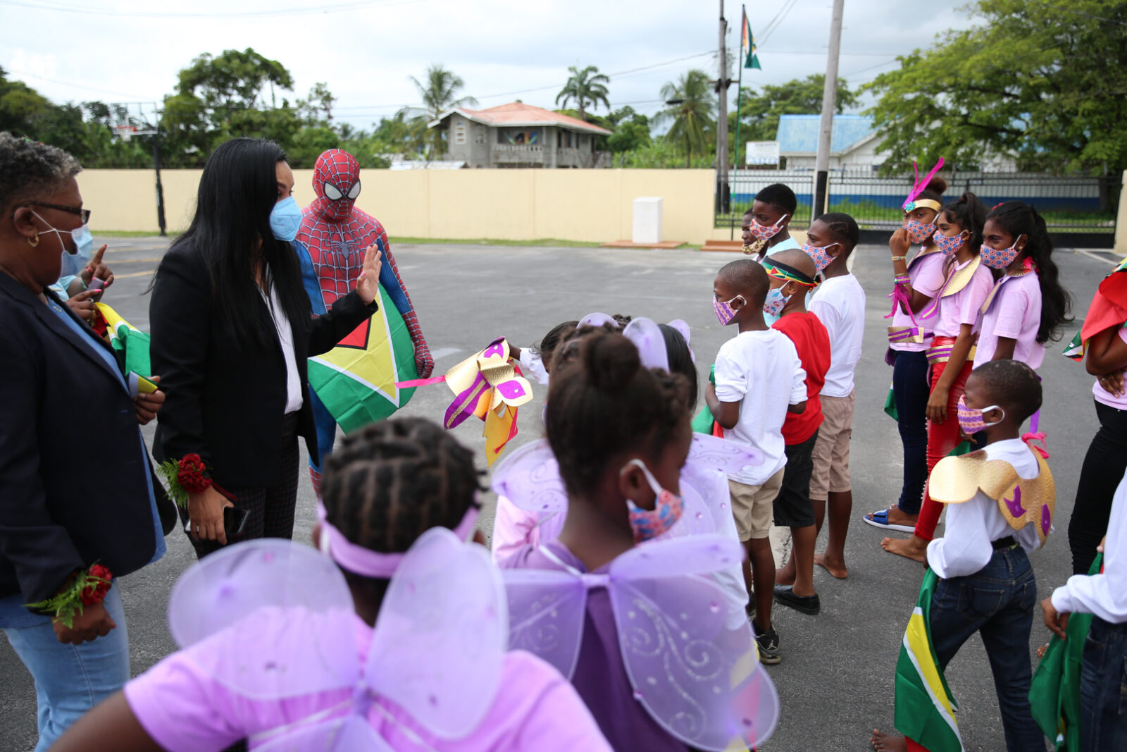 PX8A8828September 2, 2020 Minister of Human Services and Social Security, Hon. Dr. Vindhya Persaud interacting with the children of the Children and Family Center Image by: Keno George