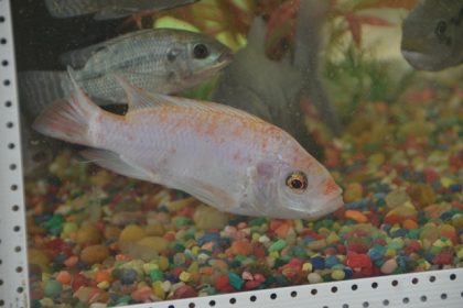 Red tilapia on display at Satyadeow Sawh Aquaculture Station.