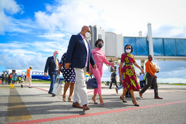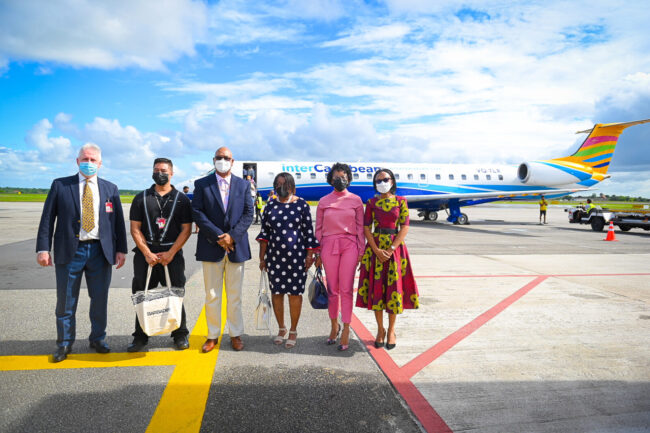 Also arriving on the flight was Barbadian Minister of Tourism and International Transport, Lisa Cummings, and Permanent Secretary, Donna Codogan.