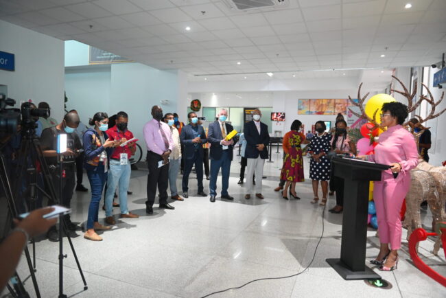 Minister of Tourism Industry and Commerce, Oneidge Walrond and Minister of Public Works, Bishop Juan Edghill were present to welcome the passengers.