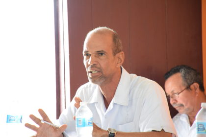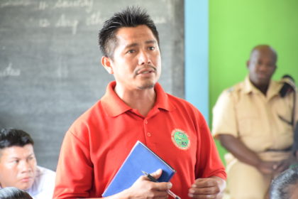 RDC Councillor , Region Eight, Carrington Joseph raising the issue of adult education classes and teachers training at the meeting in Kato