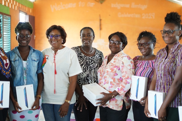 Minister of Education, Hon. Dr. Nicolette Henry, Minister of Public Telecommunications, Hon. Catherine Hughes and the Headteacher and teachers of Kato Secondary School.