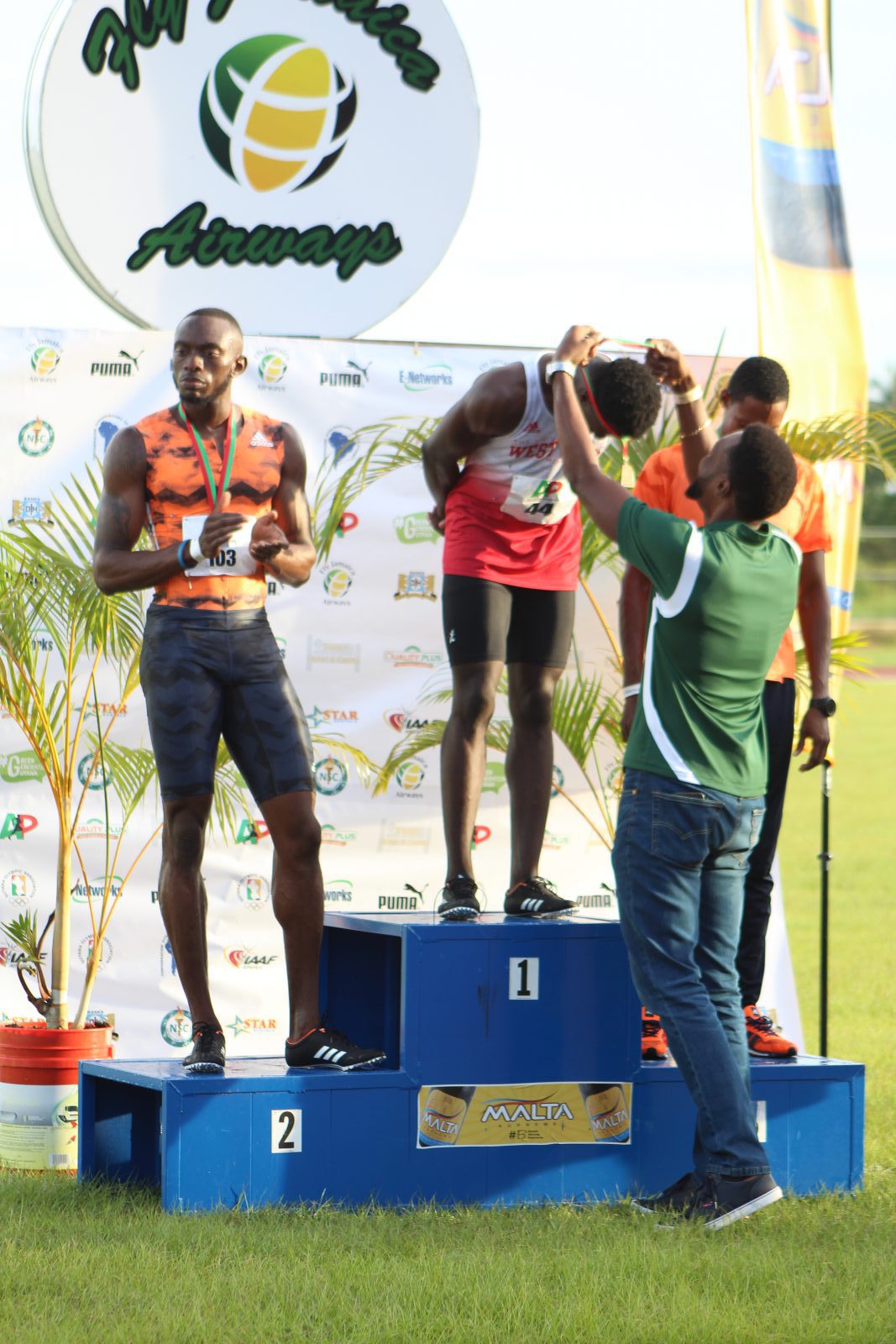 IMG_9279July 1, 2018 Emanuel Archibald receiving his gold medal from Director of Sport Christopher Jones
