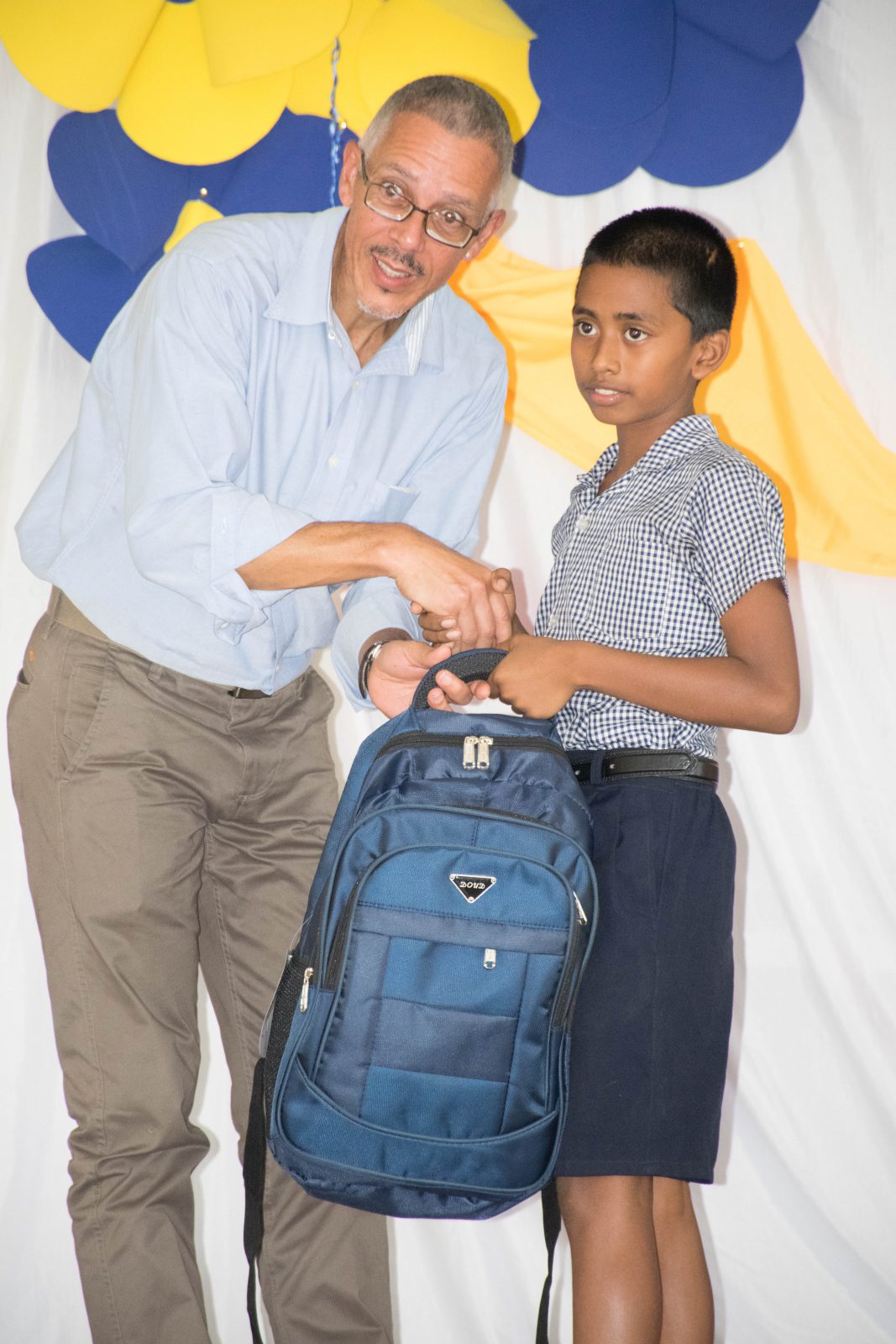 DSC_5452August 6, 2018 Minister of Business, Dominic Gaskin presents a backpack to one of the NGSA graduates