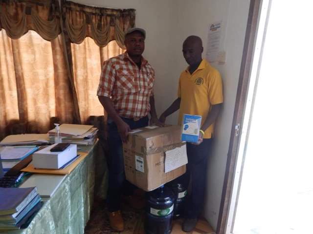 Doctor in Charge at the Kwakwani Hospital Gregory Harris (left and Regional Vice Chairman Elroy Adolph (right)