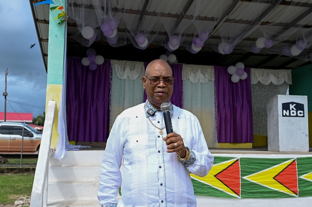 DSC_3667March 11, 2025 Minister of Public Works, Bishop Juan Edghill delivers remarks in Kwakwani, Region Ten