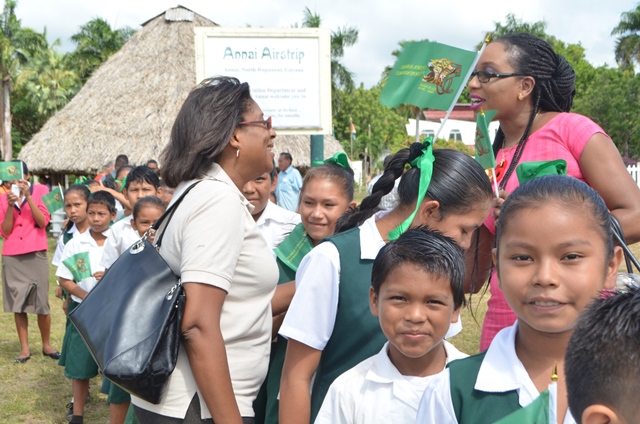 dsc_5553November 11, 2016 Government Ministers and team were warmly received in the three locations where laptops were distributed. Here they are being welcomed by the students at the laptop distribution exercise in BINA Hill, in Annai.