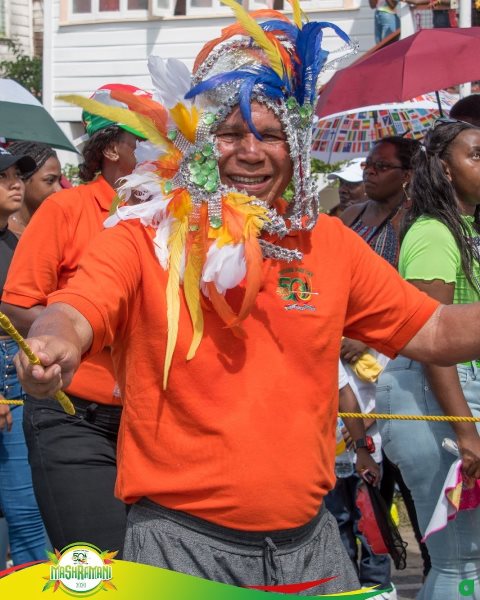DPI 20February 23, 2020 Minister of Social Cohesion Dr. the Hon. George Norton enjoys himself as he leads his band down Vlissengen Road. Image: DPI