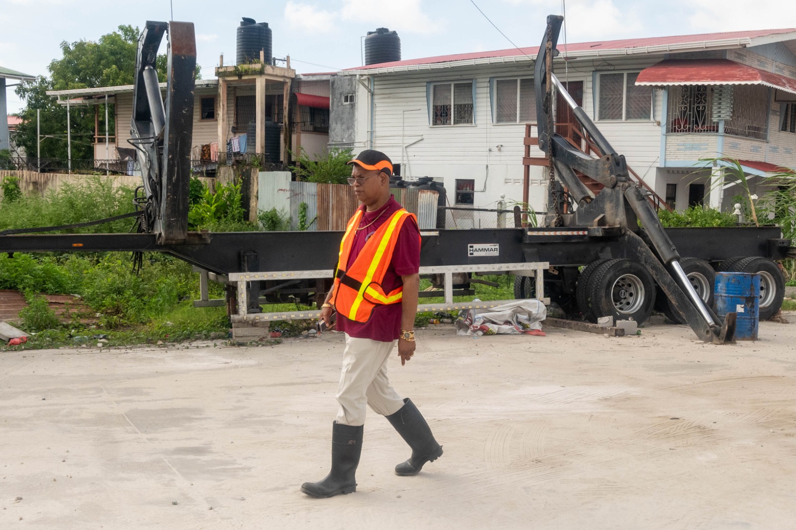 WhatsApp Image 2025-04-26 at 8.35.21 PMApril 26, 2025 Minister of Public Works, Bishop Juan Edghill inspecting the corridors lined with trucks and heavy duty equipment