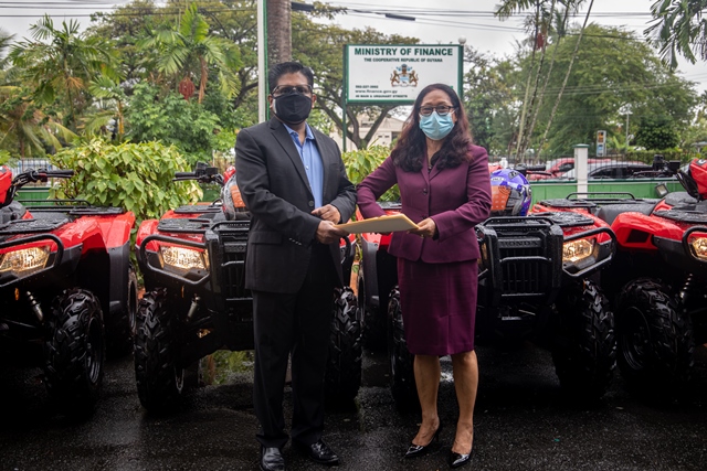 The Ministry of Finance on Friday afternoon handed over five all-terrain-vehicles (ATVs) to the Ministry of Amerindian Affairs to improve accessibility in the hinterland regions.