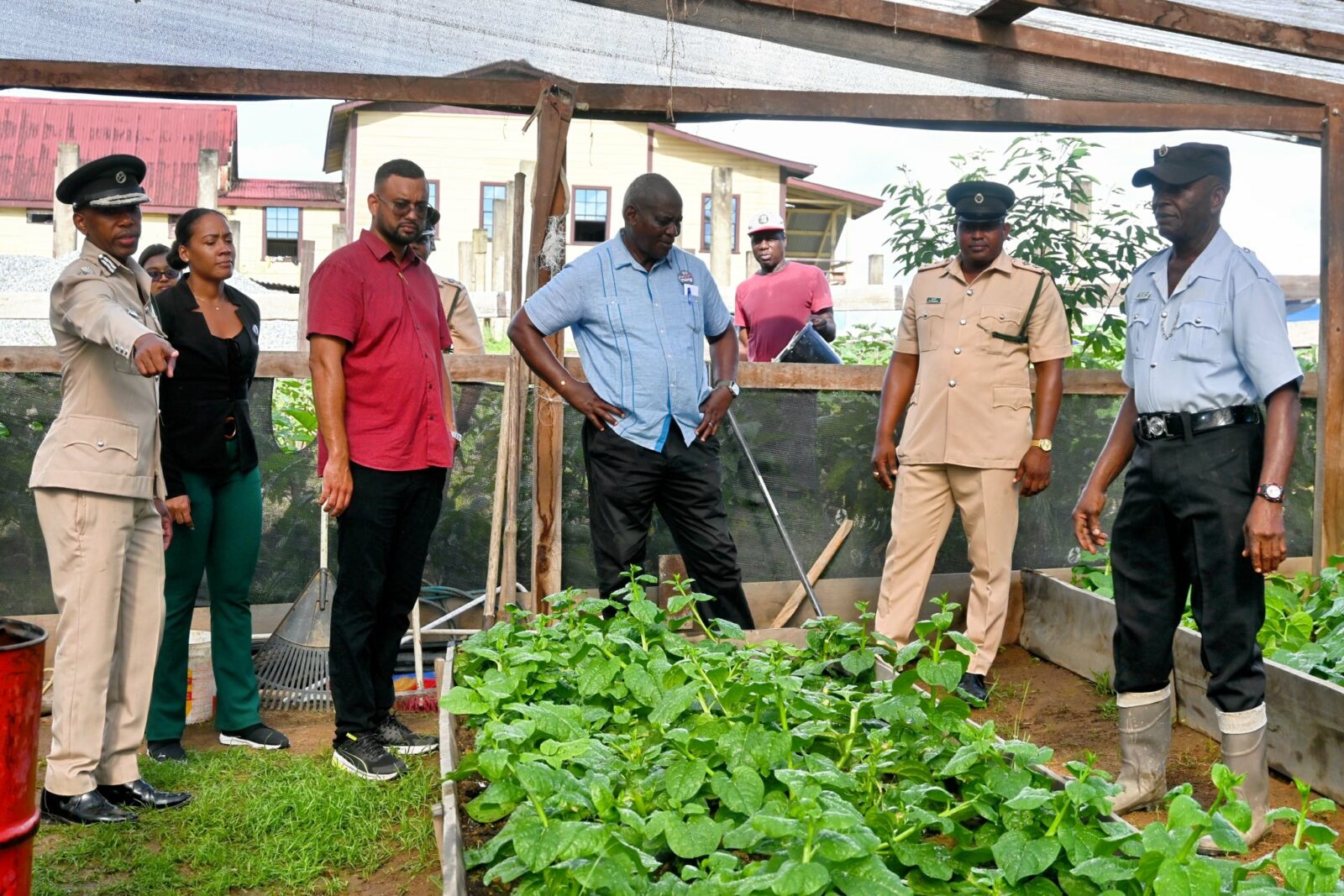 Minister Robeson Benn inspecting the garden that was established by prisoners
