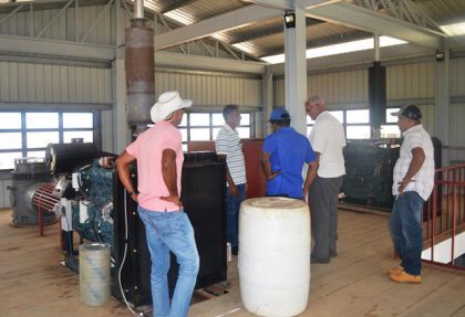 Minister Holder, NDIA CEO, Fredrick Flatts and other officials inspecting the pumps installed at the Lusignan Pump Station.