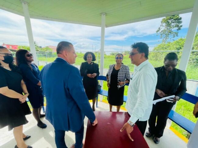 Today a team comprising of Hon. Mohabir Anil Nandlall, SC, MP, Attorney General and Minister of Legal Affairs, Hon. Collin Croal, MP, Minister of Housing and Water and a technical team from that Ministry, Hon. Yonette Cummings, OR, Chancellor of the Judiciary, Hon. Roxanne George-Wiltshire, SC, CCH, Chief Justice, Ann McLennan, Chief Magistrate, and a team from the Supreme Court visited a plot of land identified by the Government of Guyana for the construction of a modern Magistrates Court.
