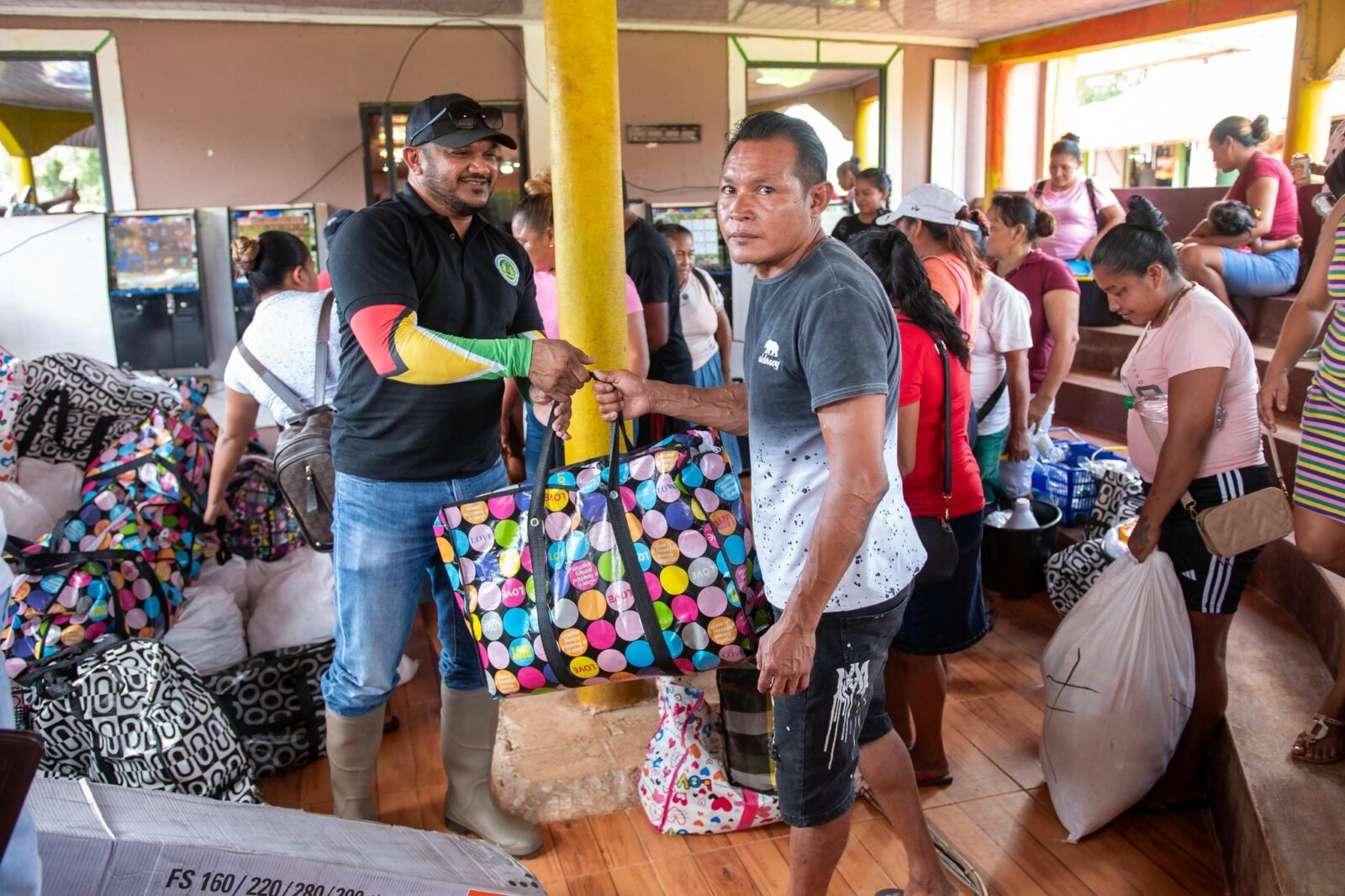 NR1June 29, 2025 Minister of Natural Resources Vickram Bharrat, handing over supplies to a Middle Mazaruni resident