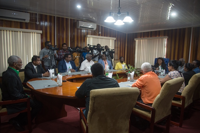 Heads of the political parties meet with Chairman of the Guyana Elections Commission Retired Justice Claudette Singh, to sign GECOM’s Code of Conduct.