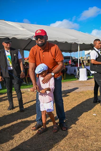 WhatsApp Image 2024-04-01 at 6.38.55 PMApril 1, 2024 President, Dr. Mohamed Irfaan Ali and his son, Zayd Ali, participating in the kite-flying activities at Everest Cricket Club Ground