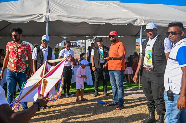 WhatsApp Image 2024-04-01 at 6.38.57 PM (1)April 1, 2024 President, Dr. Mohamed Irfaan Ali and his son, Zayd Ali, participating in the kite-flying activities at Everest Cricket Club Ground