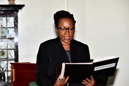 Georgetown, Guyana – (March 30, 2017) President David Granger today swore-in Ms. Paulette Henry to the Lands Commission of Inquiry at State House. Ms. Henry was unable to attend the initial ceremony on March 10 when the Chairman and other members of the Commission took their oath.