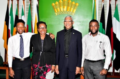 President David Granger poses with the new Commissioner, Ms. Paulette Henry and her sons at State House